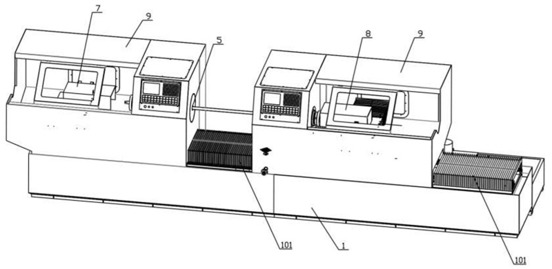 圖5是本實(shí)用新型碳化硅管體雙頭打磨車床的長管加工示意圖;