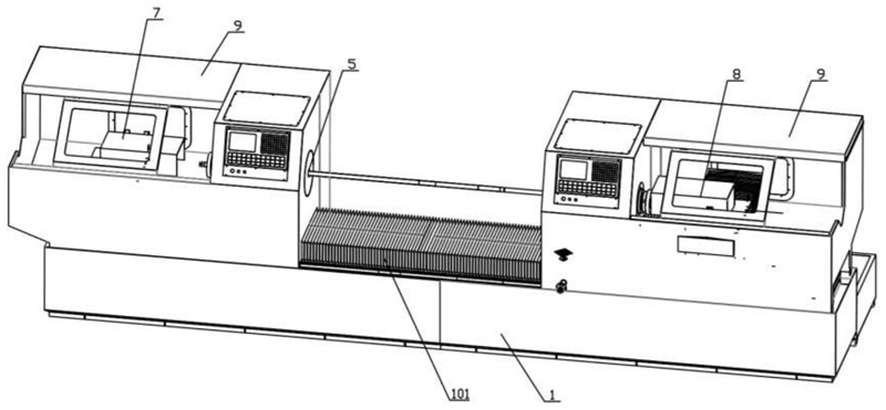 圖1是本實(shí)用新型碳化硅管體雙頭打磨車床的結(jié)構(gòu)示意圖;