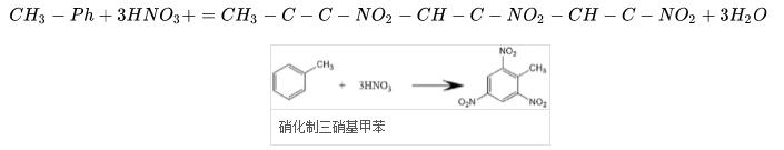 這種反應常被利用來生產2,4,6—三硝基甲苯(即TNT),方程式: