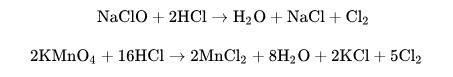 濃鹽酸(發煙鹽酸)會揮發出酸霧。鹽酸本身和酸霧都會腐蝕人體組織,可能會不可逆地損傷呼吸器官、眼部、皮膚和胃腸等。在將鹽酸與氧化劑(例如漂白劑次氯酸鈉或高錳酸鉀等)混合時,會產生有毒氣體氯氣。