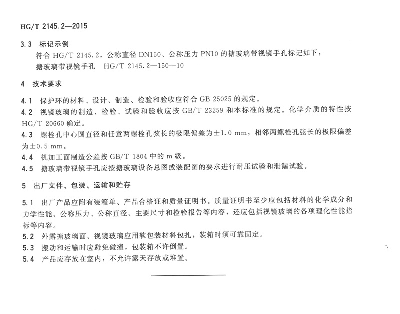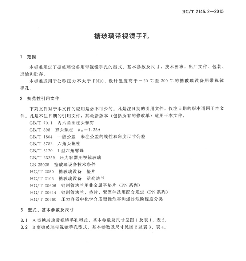 中華人民共和國化工行業標準HG/T 2145.2-2015搪玻璃帶視鏡手孔 點擊下載搪玻璃帶視鏡手孔行業標準