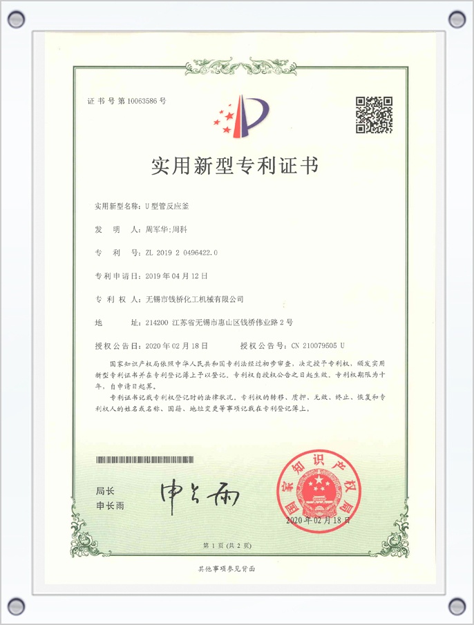 碳化硅換熱器內(nèi)測密封裝置專利證書