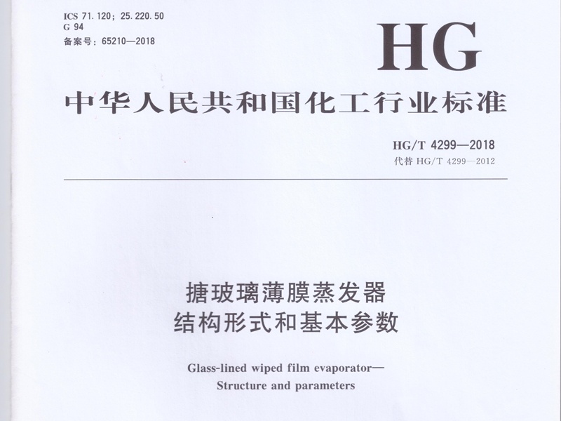 HG/T 4299-2018搪玻璃薄膜蒸發器結構形式和基本參數范圍