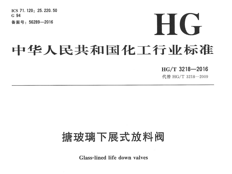 中華人民共和國(guó)化工行業(yè)標(biāo)準(zhǔn)之HG/T 3218-2016搪玻璃下展示放料閥,無錫市錢橋化工機(jī)械有限公司為本標(biāo)準(zhǔn)起草單位之一…… ...