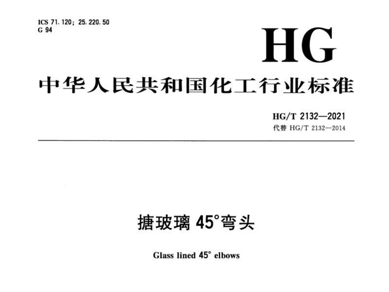HG/T 2132-2021搪玻璃45°彎頭行業(yè)標(biāo)準(zhǔn)簡(jiǎn)介和下載
