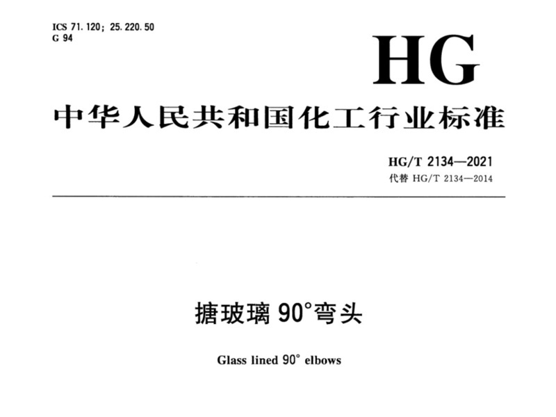 HG/T 2134-2021搪玻璃90°彎頭行業(yè)標(biāo)準(zhǔn)簡(jiǎn)介和下載
