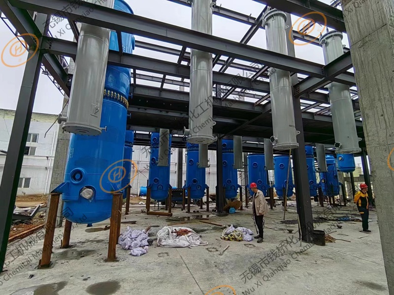 無錫市錢橋化工機械有限公搪玻璃塔設備施工現場